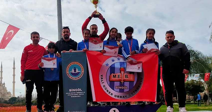 Okul Sporları Kros Türkiye Birinciliği Yarışmaları, Adana’da yapıldı. Bingöl’ü temsilen yarışmaya katılan Vali Güner Orbay Ortaokulu Yıldız Kız Takımı, Türkiye Şampiyonu oldu. |
